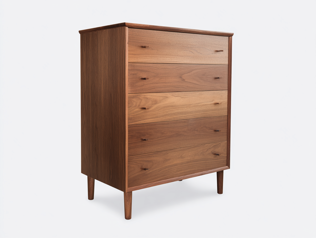 Kommode mit Schubladen-Holz 94x48x112 cm-Braun-Mid Century Stil